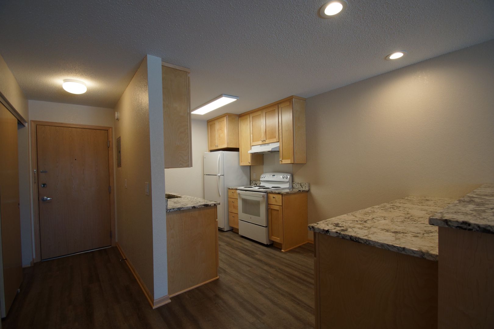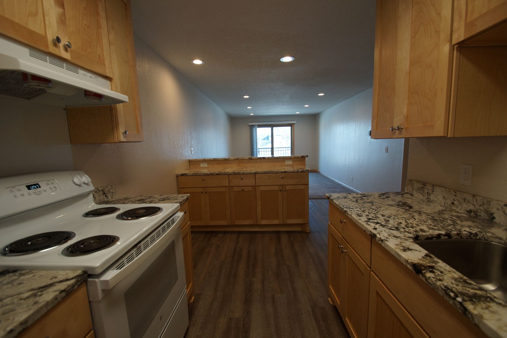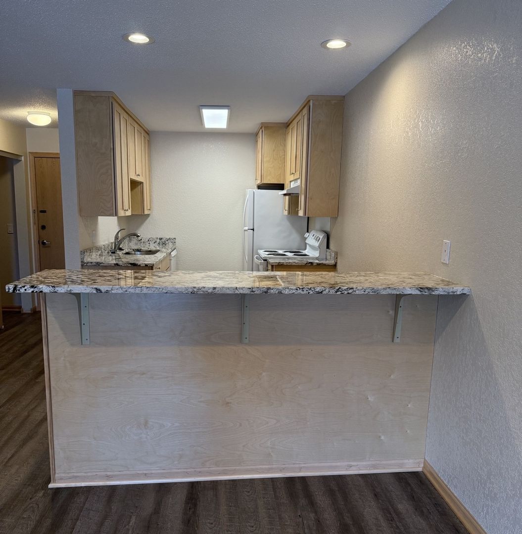 Inside, you’ll find thoughtfully added overhead lighting in the living room, time‑saving modern appliances, and abundant storage, including our signature maple‑wood peninsula with extra cabinets and a beautiful granite countertop.